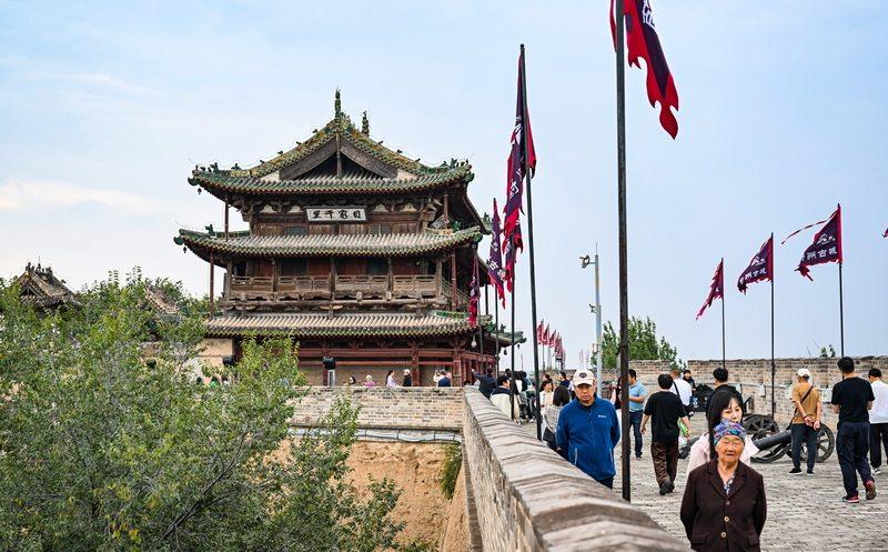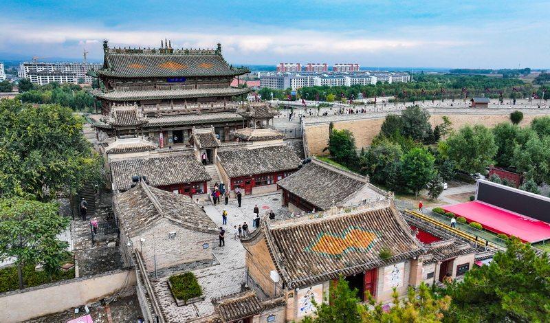 10月6日,游客在蔚县玉皇阁游玩。