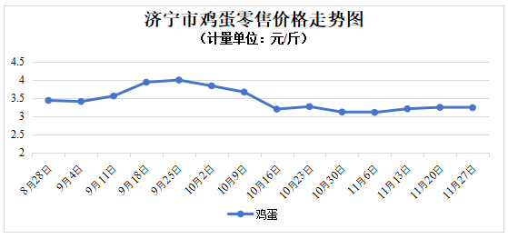 肉禽蛋价格涨跌互现。11月27日,济宁市精瘦肉和五花肉集市平均售价分别为12.21元/斤和11.14元/斤,其中精瘦肉价格环比持平,五花肉价格环比上涨1.30%;白条鸡和鸡蛋集市平均售价分别为8.00元/斤和3.23元/斤,环比分别下降1.03%和0.37%。
